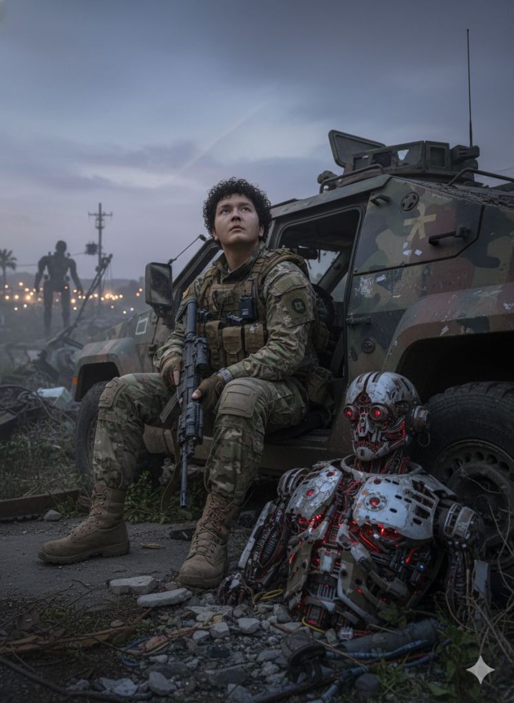 The storm had finally burned itself out. A copper silence hung over Orison’s Ruin, where the bones of a city slept half-buried beneath the sand. Commander Kyi Ramses sat against the rusted head of a fallen war-titan, the machine’s visor cracked open like an empty skull. Wind hissed through the desert’s teeth, and he listened—not for enemies, but for proof that the world was still breathing.